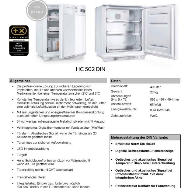 Dometic Medikamentenkühlschrank HC 502 DIN 58345